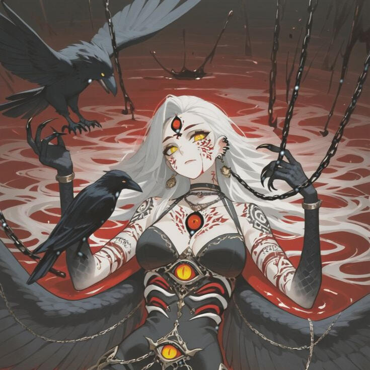 - Forme véritable : Une masse d’ombre mouvante, constellée de tentacules vivants et d’yeux innombrables. Instable, amorphe, sans limite corporelle, sa nature échappe à toute logique. Elle n’est pas une créature à regarder, mais un concept incarné.- Formes humaines : Hella se glisse dans des silhouettes humaines séduisantes, élégantes et charismatiques. Ces visages, toujours changeants, lui permettent de se fondre parmi les mortels sans éveiller le moindre soupçon. Elle aime modeler ces formes selon ses envies : parfois provocantes, parfois raffinées, toujours façonnées pour attirer le regard.